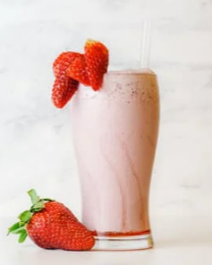 Strawberry, banana, oats, honey with an oat milk base and one scoop of vanilla Whey Protein.